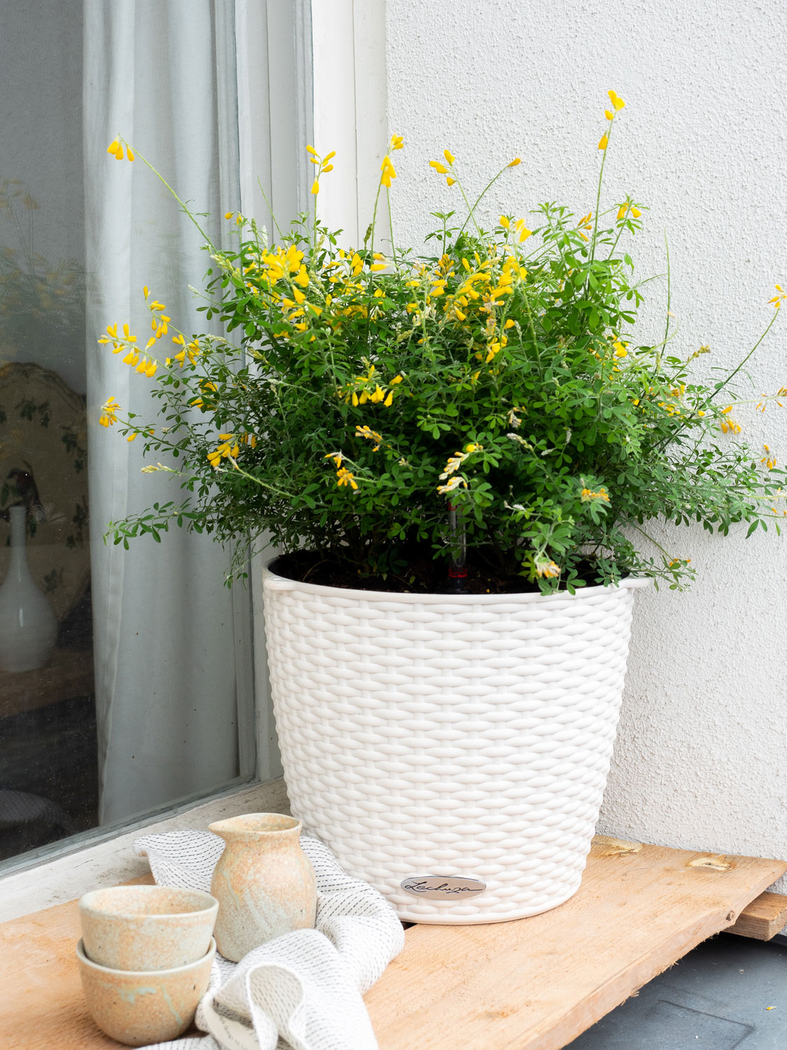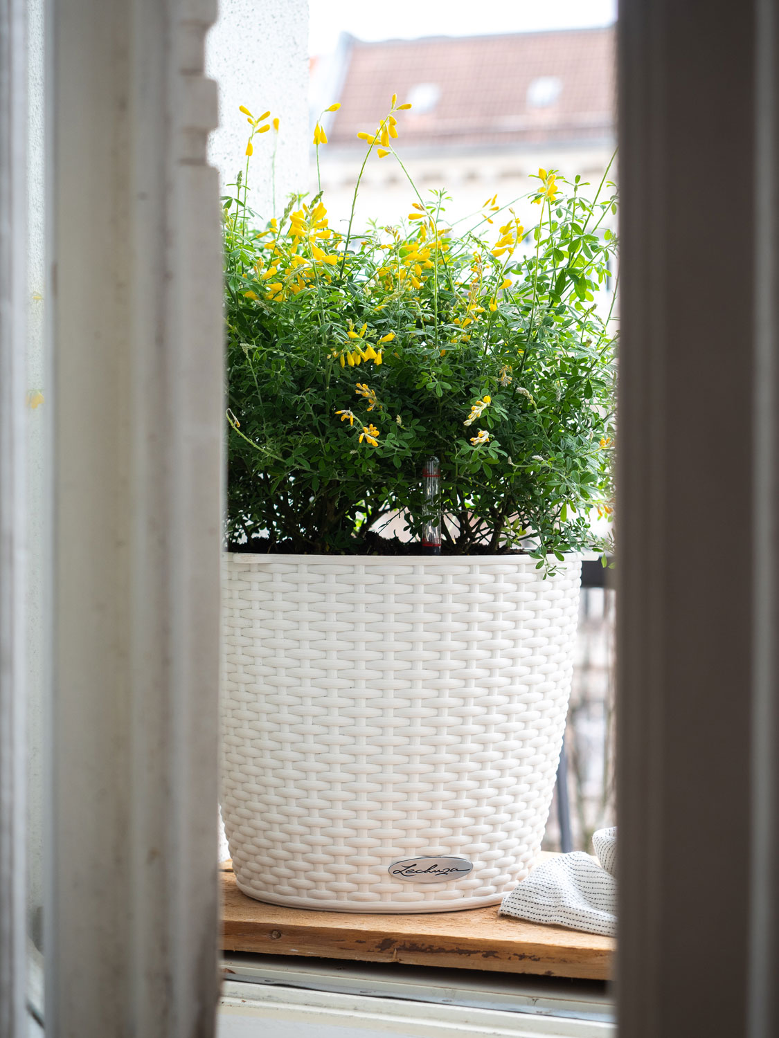 Aus den letzten Posts kennt ihr ja schon die tollen Pflanztöpfe von Lechuza, die sich wie ein roter Faden durch meine ‚Pflanze des Monats‘-Reihe ziehen. In diesem Fall findet die Cytisus ihren Platz in einem Topf, der sowohl stehend als auch hängend richtig klasse aussieht. Schließlich passt er mit seinem Flecht-Design fast in jedes Ambiente. Und auch bei dieser Pflanztopf-Ausführung gibt es wieder das tolle Bewässerungssystem mit dem man immer auf einen Blick erkennen kann, ob dem Pflänzchen eventuell nach einem Schluck Wasser zu Mute wäre.